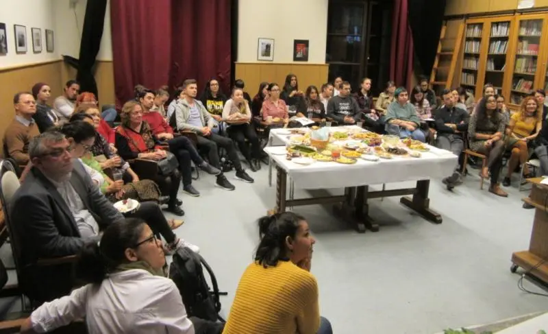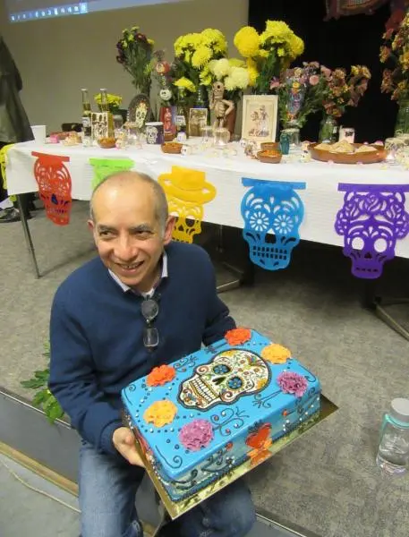 On November the 6th, the Institute of English and American Studies of the University of Debrecen organized a program about the Mexican rituals of the Day of the Dead. This included the setting up of a traditional altar, with all kinds of typical items, like sugar and chocolate skulls, clay skeletons, and food offerings. The participants were divided in teams to answer a quizz, with a chocolate skull as the winner’s prize, and students were invited to colour skull prints. At the closing highlight, the program featured a lecture by the Mexican visiting lecturer, Agustín Cadena.