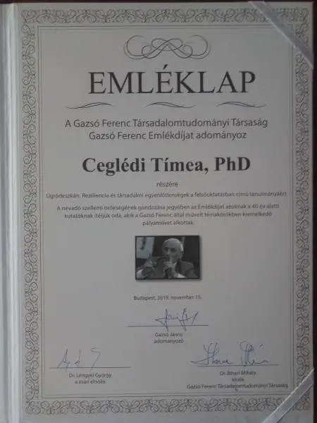 A Gazsó Ferenc Társadalomtudományi Társaság Gazsó Ferenc Emlékdíjat adományozott a Nevelés- és Művelődéstudományi Intézet oktatójának, Dr. Ceglédi Tímeának az "Ugródeszkán. Reziliencia és társadalmi egyenlőtlenségek a felsőoktatásban" című pályaművéért.