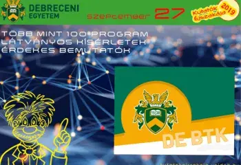 A Debreceni Egyetem Bölcsészettudományi Kara programok sokaságát kínálja a Kutatók Éjszakáján (2019. szeptember 27.) az Egyetem téri Főépületben.